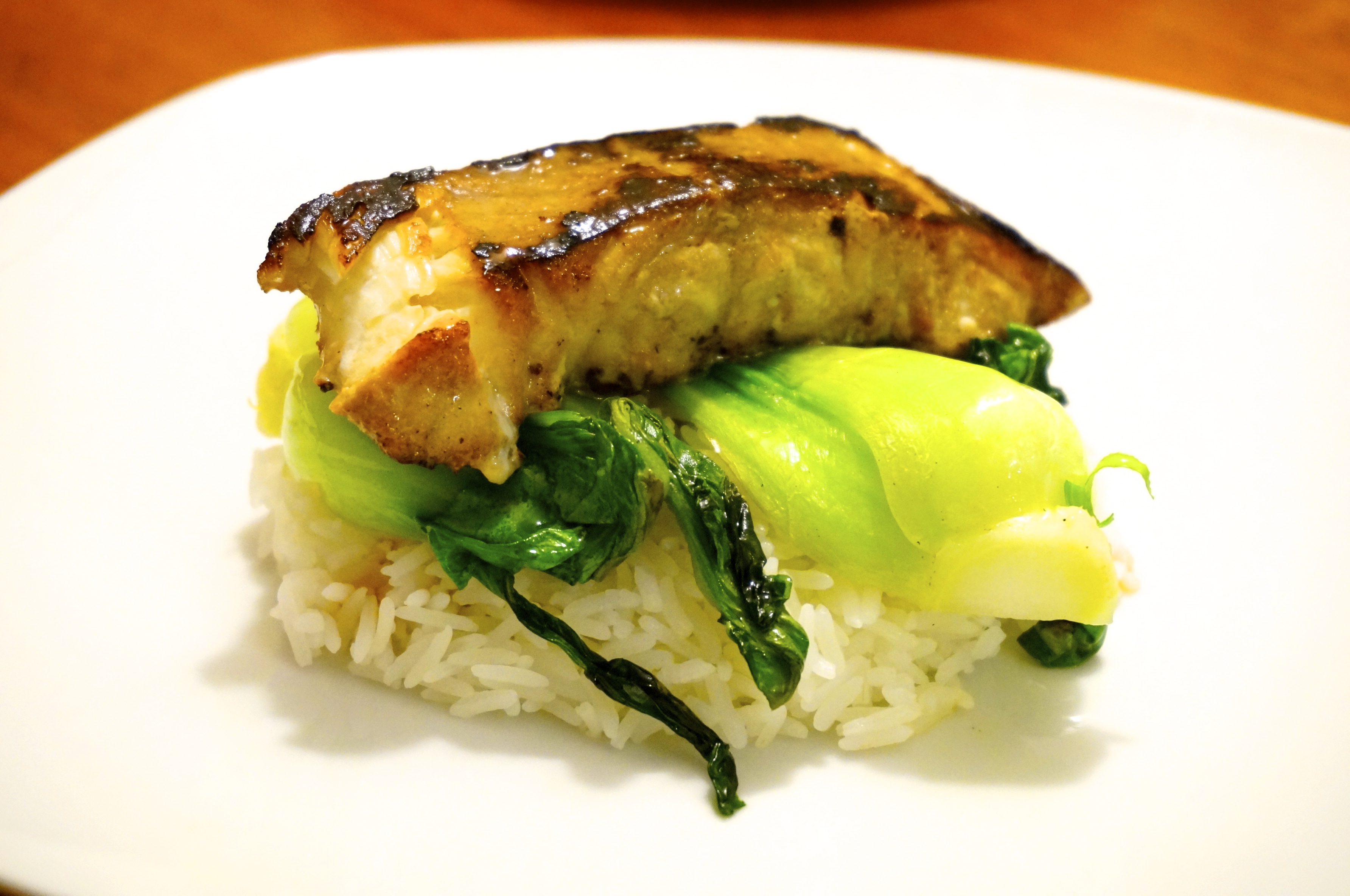 - Place the fish and bok choy over a bed of rice and eat